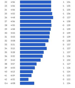 年代別:8位/31人中、 男子:23位/87人中、総合:26位/130人中