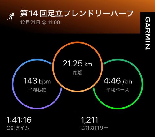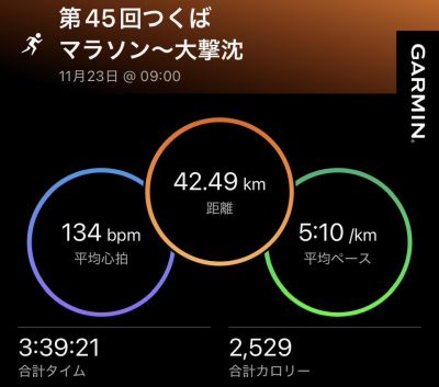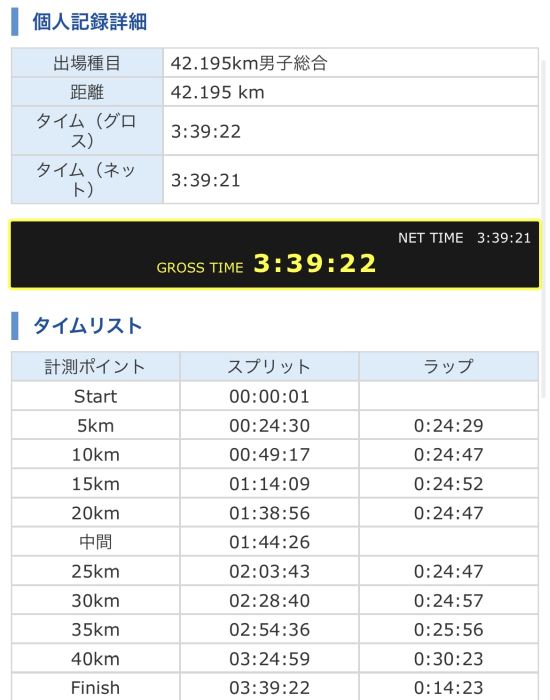 ロング走不足で記録が狙えるほどフルマラソンは甘くなく、予想通りの結果でした。
