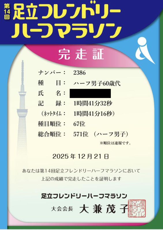 ◆ 2025/02/15 第81回 板橋月例チャレンジ【ハーフマラソン】