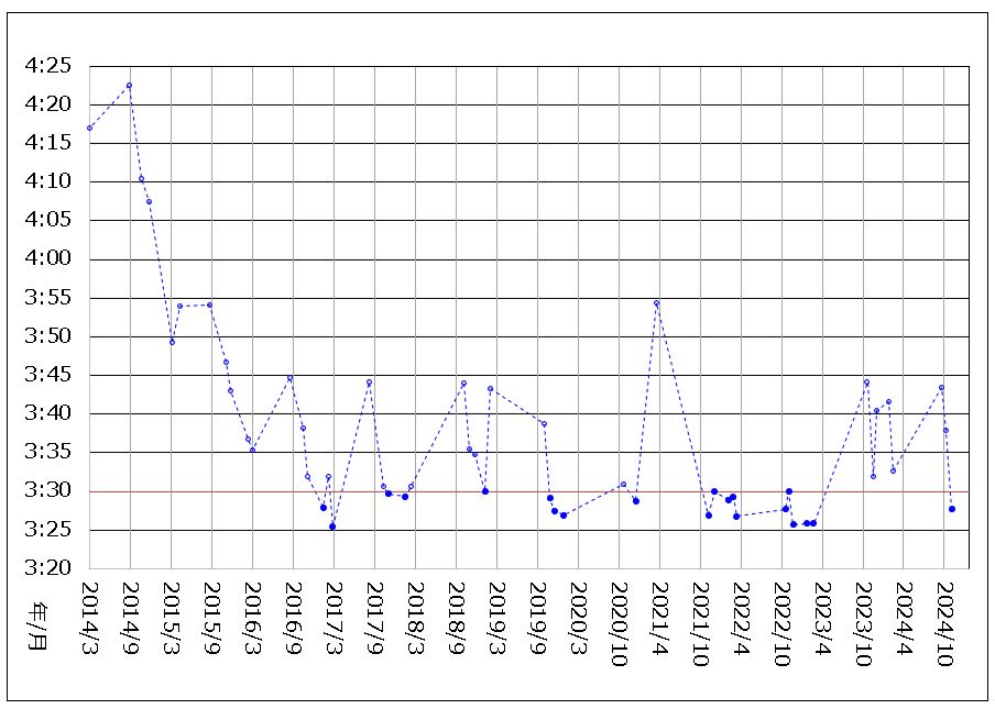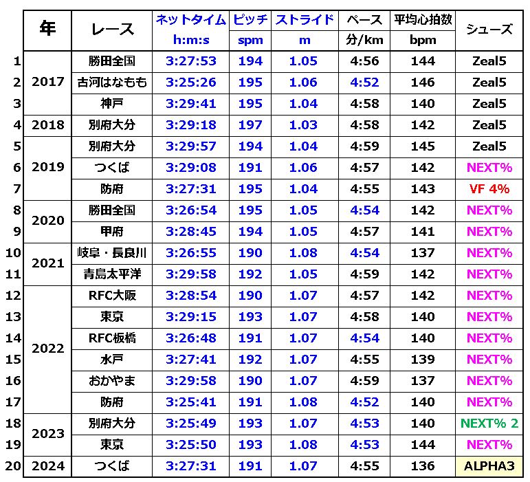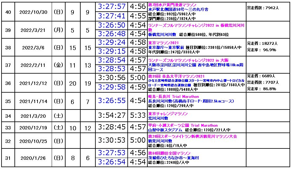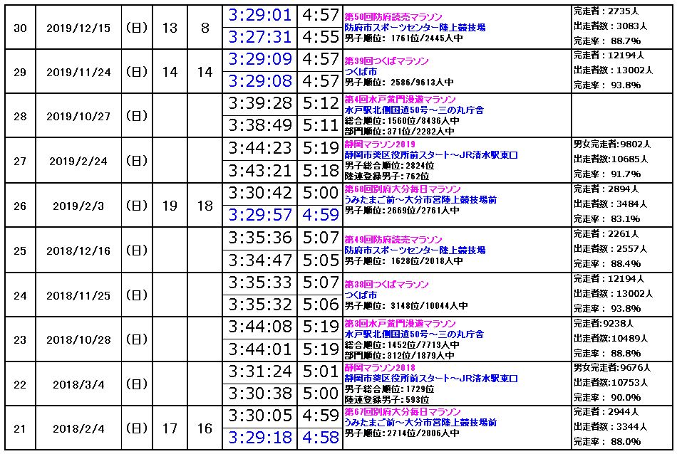 ロング走不足で記録が狙えるほどフルマラソンは甘くなく、予想通りの結果でした。