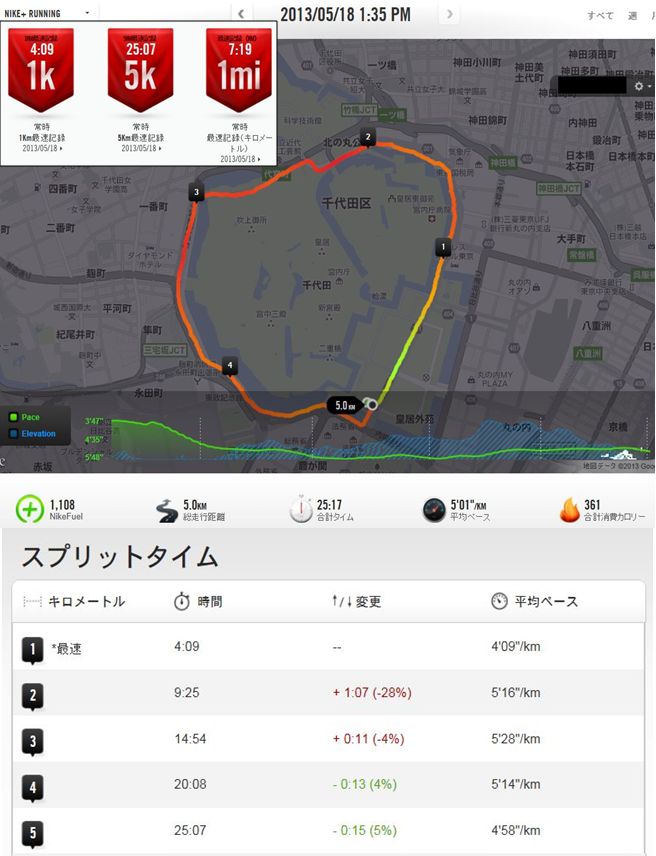 ◆ 2013/5/18 皇居周辺マラソン大会 5kの記録