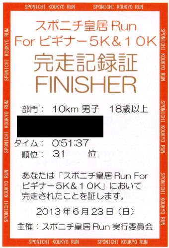 ◆ 2013/6/23 第4回スポニチ皇居 Run For ビギナー 10kmの大会に初挑戦