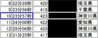 順位は、男子:51位/134人中、10歳刻みの年齢別:14位/31人中。